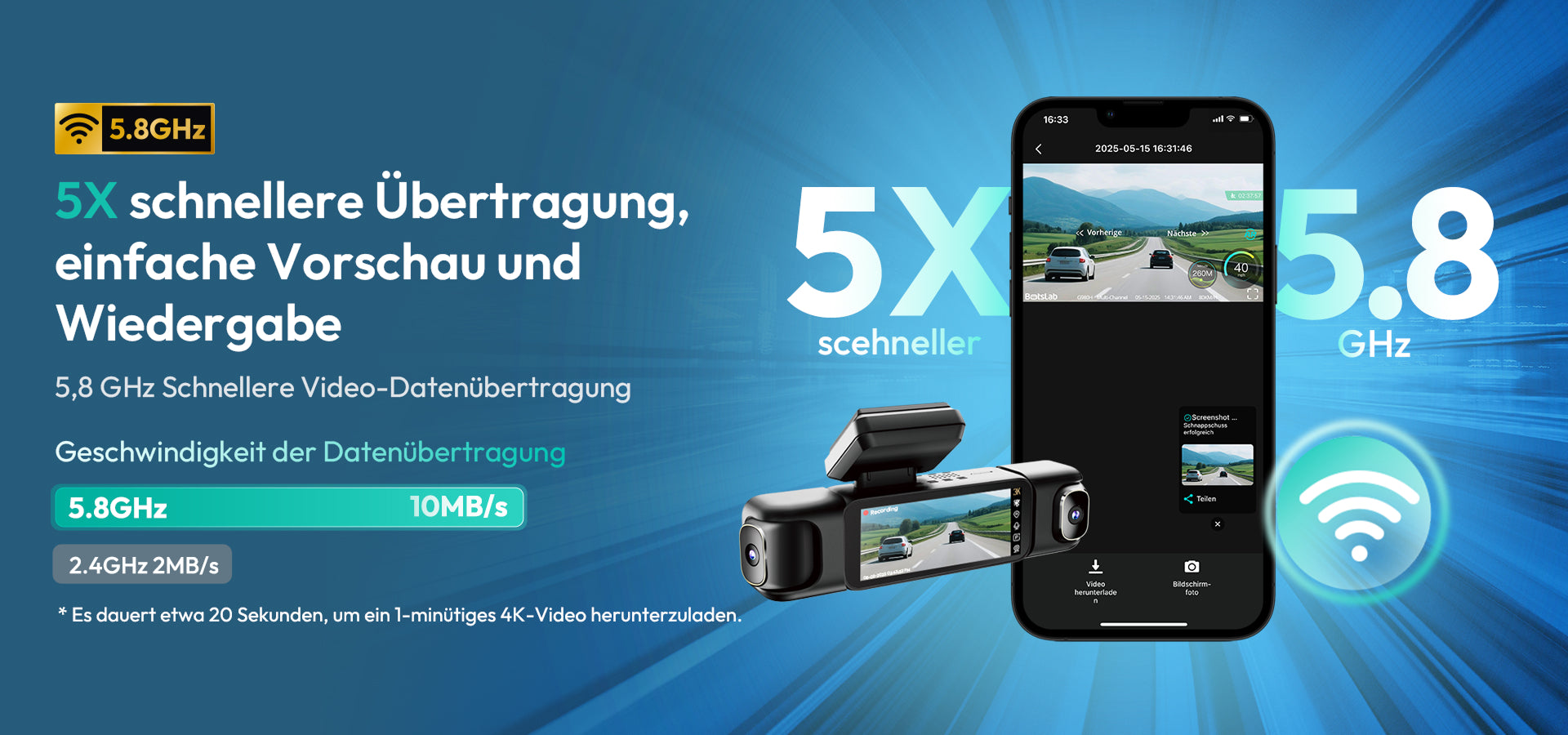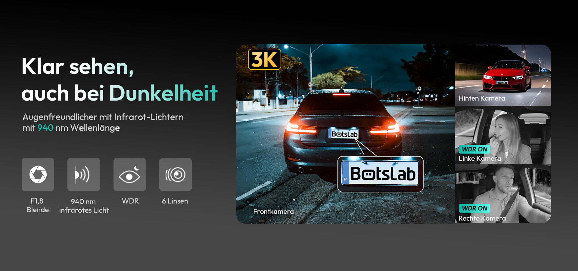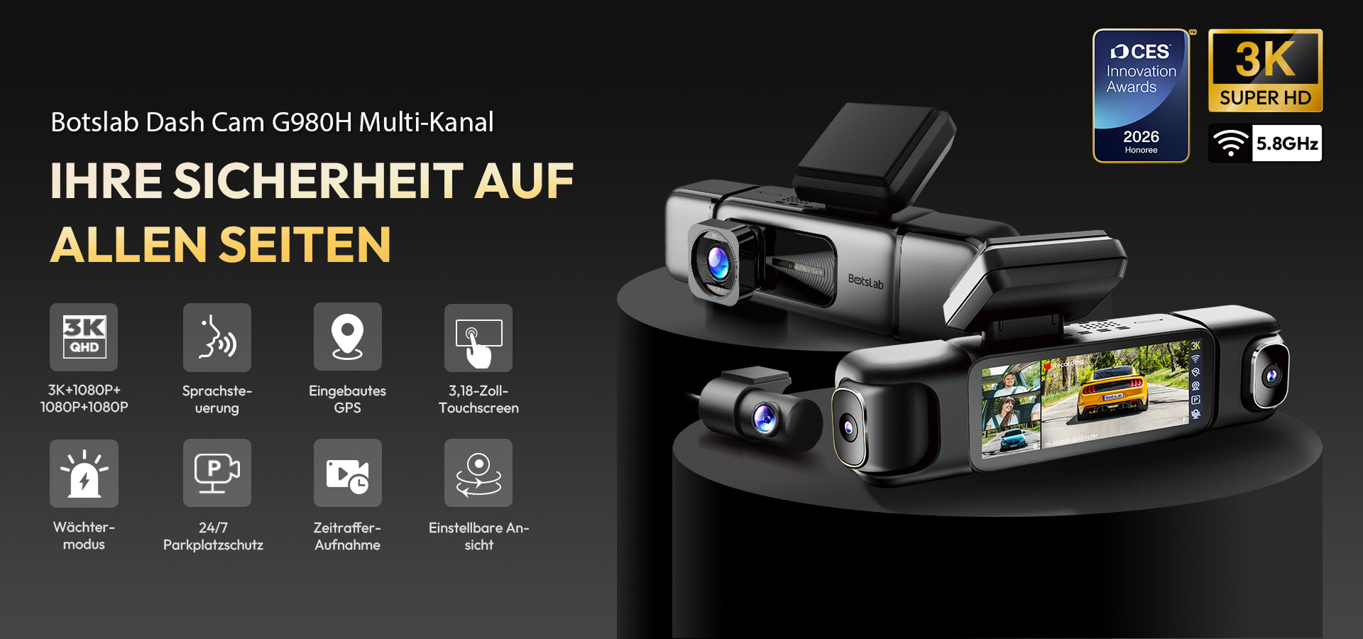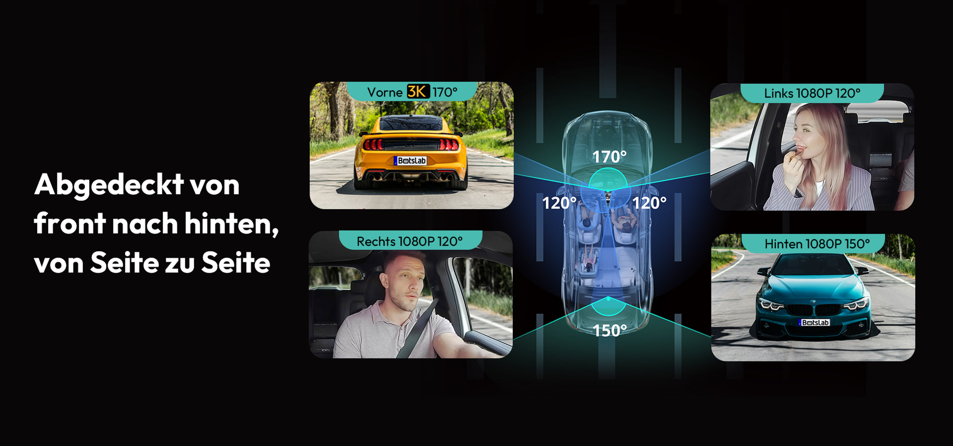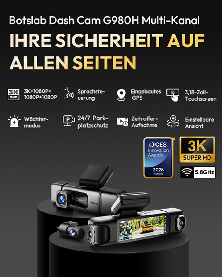 Botslab Dashcam G980H Mehrkanal – 4-Kamera-System
